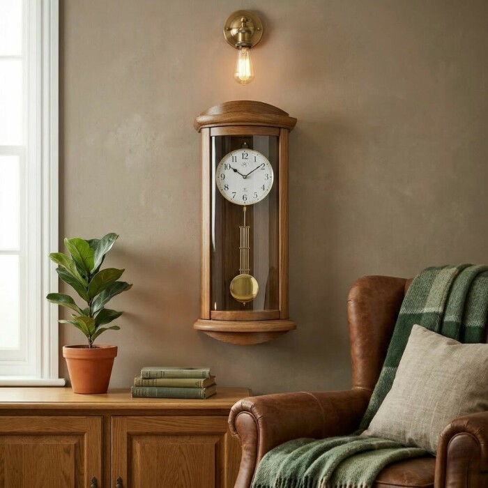 Avec sa forme galbée qui épouse la forme du cadran, vous adorerez décorer votre intérieur avec ce carillon en bois de merisier. Il apportera chaleur et tradition à votre séjour et sonnera comme d'antan, sans avoir à le remonter. Les piles suffiront à faire fonctionner votre carillon.