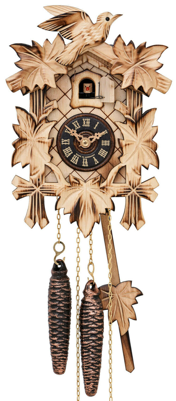 Dans le plus pur respect de la tradition horlogère, ce modèle de coucou mécanique sort des ateliers de Forêt Noire. Son bois clair conviendra à une décoration intérieure chaleureuse et soignée.