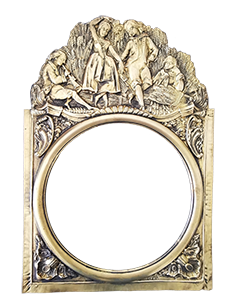 En laiton estampé, ces frontons reproduisent une scène de la vie courante en valorisant toujours la valeur Travail.