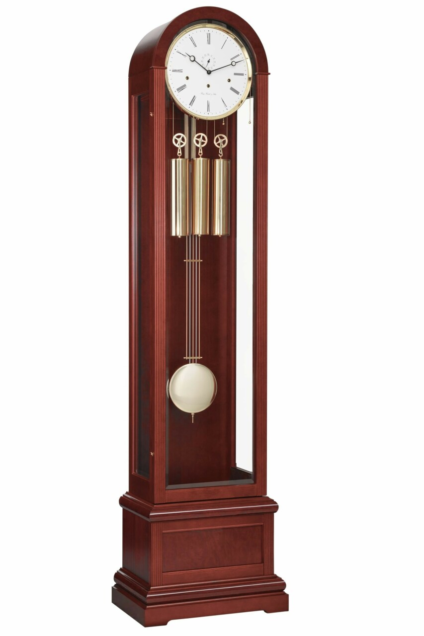 Ce modèle de comtoise revisité existe dans 4 types de bois différents : noyer, acajou, merisier et hêtre. De manufacture allemande, vous serez assurés de sa qualité.