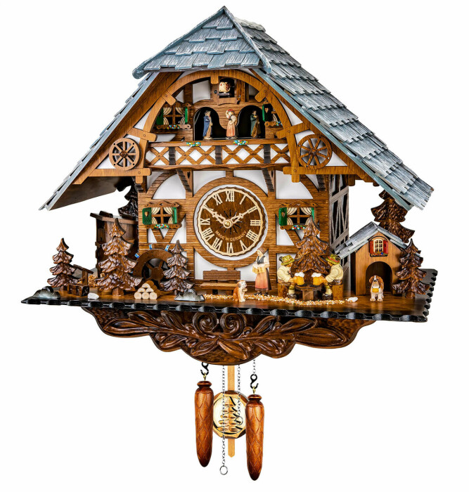 De fabrication artisanale, les sculptures sont exécutées à la main. Fiez-vous aux mouvements fabriqués en Forêt Noire. D'ailleurs, tous nos coucous sont livrés avec certificat d'authenticité de fabrication en Forêt Noire