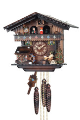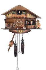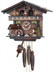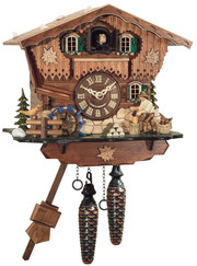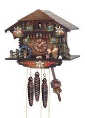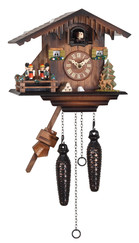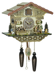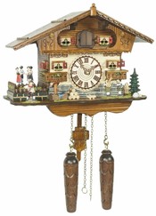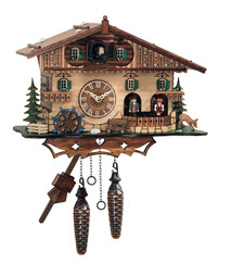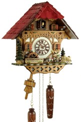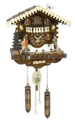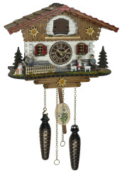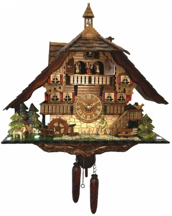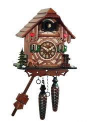 Le principe du coucou à quartz musical fait chanter le coucou toutes les heures mais après son chant se déclenchera une mélodie agréable qui fera danser des personnages. Souvent habillés en habits traditionnels, ils se mettront à tourner sur une plateforme au rythme de la musique. Il faudra alimenter ce type de coucous par une pile supplémentaire, uniquement pour la boîte à musique. Si le remontage du coucou vous est désagréable, les coucous à quartz seront parfaits car vont donneront l’illusion d’avoir un vrai coucou mécanique, sans avoir besoin de le remonter.