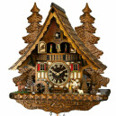 Véritable coucou de la Forêt Noire, réalisé en bois de tilleul et équipé d'un mouvement à piles, vous adorerez admirer le bûcheron en plein travail, au rythme de la mélodie. La roue du moulin tournera également pendant l'animation, tout comme les 4 couples de danseurs en haut.