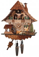 Equipé d'un mouvement à piles, vous n'aurez pas besoin de le remonter. Le balancier oscille mais les poids ne sont présents qu'à titre esthétique. Le chant du coucou retentira accompagné de l'écho de la forêt pour ensuite laisser place à une mélodie très agréable.