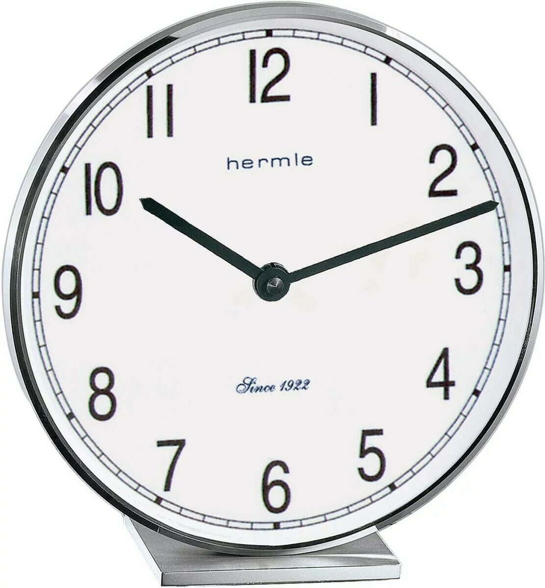 Cette horloge de table Hermle incarne l'élégance du design contemporain avec son boîtier circulaire en acier inoxydable. Le cadran blanc immaculé, protégé par un verre en façade, chiffres arabes noirs parfaitement lisibles et mention "Since 1922" qui témoigne du savoir-faire centenaire de la marque.