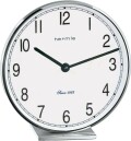 Les aiguilles noires contrastent parfaitement avec le fond blanc pour une lecture précise de l'heure. Le socle en inox assure une stabilité parfaite sur tout type de surface. Alimentée par pile, cette horloge à quartz offre une précision constante sans contrainte de remontage.