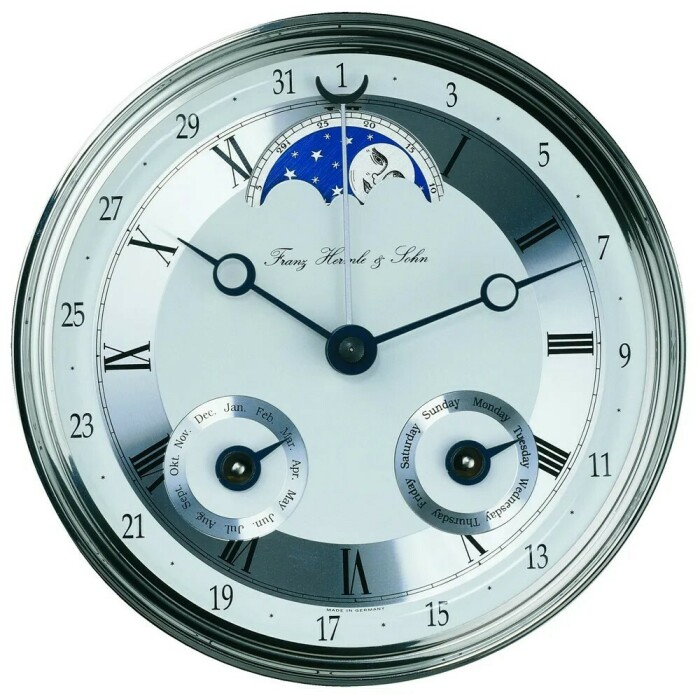 Cette horloge marine Hermle perpétue l'authentique tradition des instruments de bord avec son mouvement mécanique 8 jours et sa sonnerie caractéristique "Ship's Bell". Proposée en trois versions - laiton chromé à cadran blanc, laiton doré à cadran blanc, ou laiton chromé à cadran bleu - elle s'adapte à différents styles décoratifs.