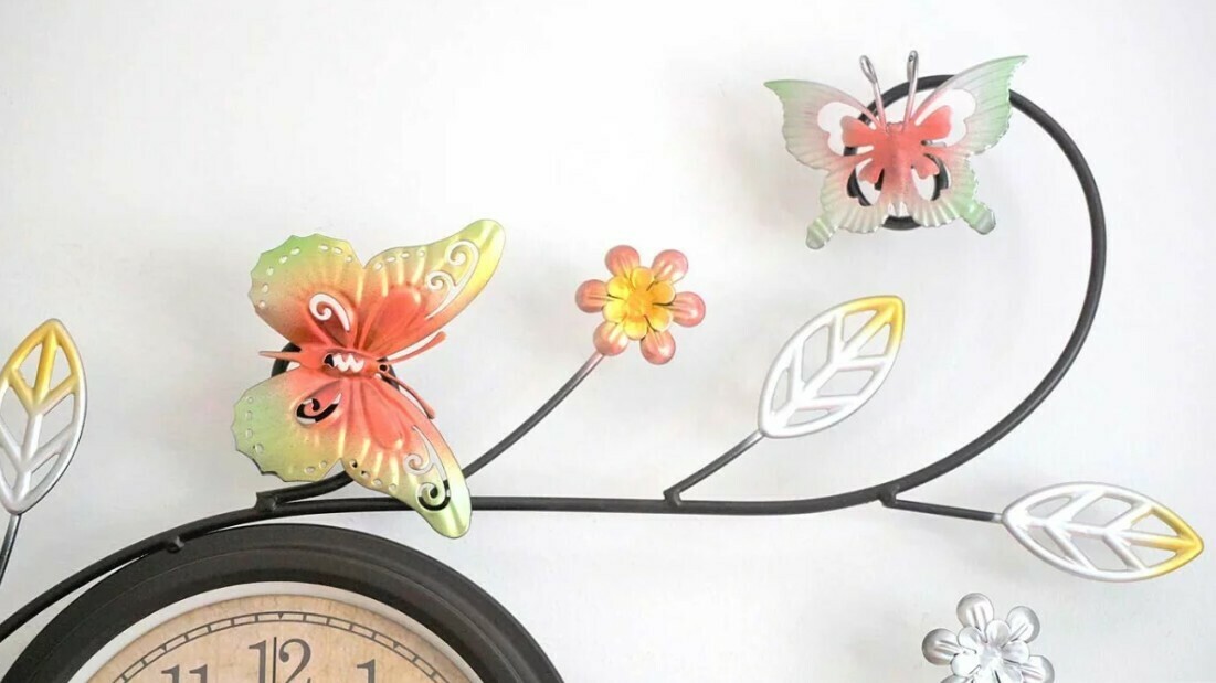 Très décorative, cette horloge trônera à merveille sur un pan de mur clair afin de bien faire ressortir le contraste et de la mettre en valeur.