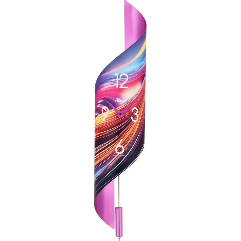 Cette horloge murale Hermle révolutionne l'horlogerie décorative avec sa forme asymétrique audacieuse et ses décors artistiques contemporains. Quatre univers esthétiques s'offrent à vous : motifs floraux multicolores éclatants, plumes délicates en nuances violettes, roses romantiques en rouge et blanc, ou abstractions colorées dynamiques.
