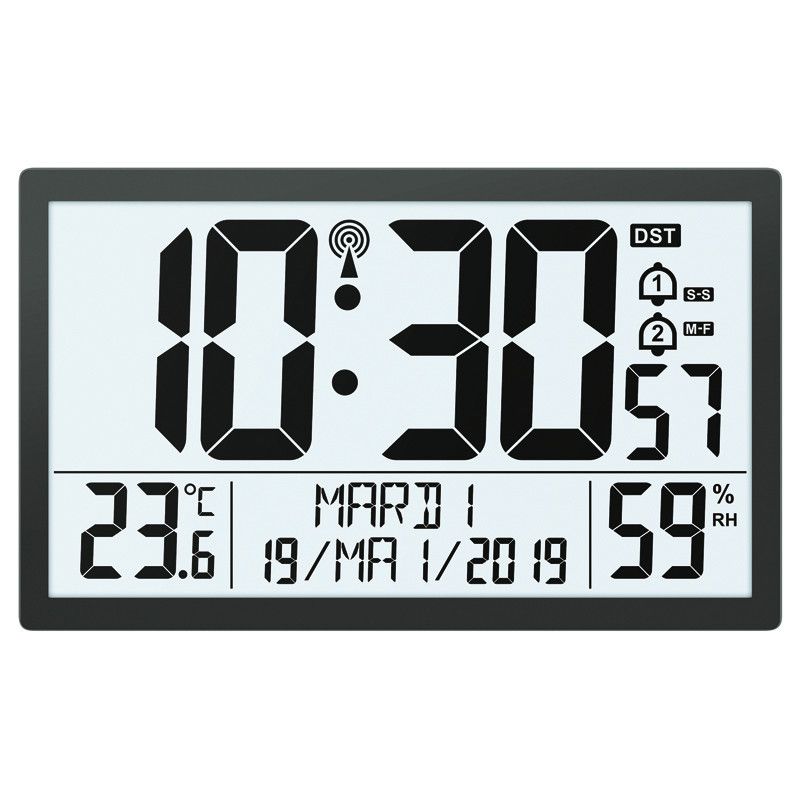 Le principal atout de cette horloge numérique est l'affichage digitale de la date complète en français, ce qui permet de se repérer facilement et régulièrement dans le temps.