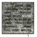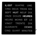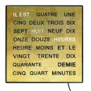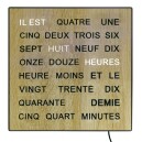 Cette horloge murale révolutionnaire affiche l'heure en toutes lettres illuminées plutôt qu'avec des aiguilles traditionnelles. Le cadran carré présente une grille de mots français qui s'éclairent sélectivement pour composer des phrases comme "IL EST QUATRE HEURES ET QUART". Disponible en quatre finitions élégantes : noir mat moderne, bois naturel chaleureux, anthracite urbain ou métallisé futuriste. La technologie LED rétroéclairée crée un effet lumineux doux et lisible.