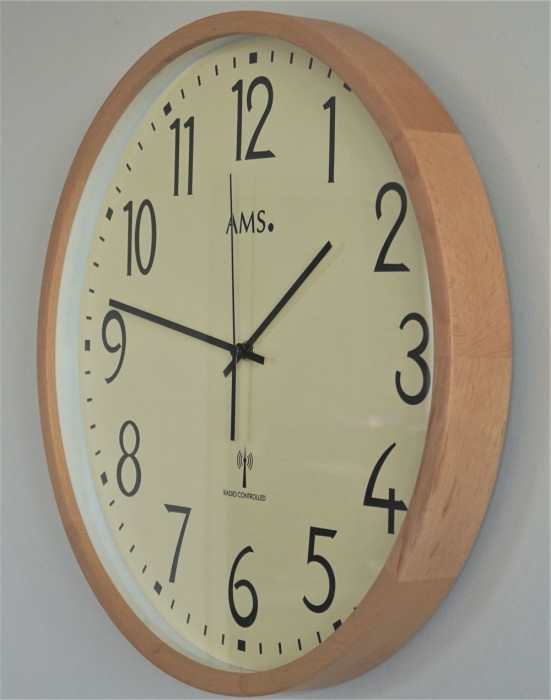 Cette horloge en bois murale avec son entourage bois teinté merisier vous donnera l'heure en toute sobriété et décorera votre intérieur simplement avec convivialité.