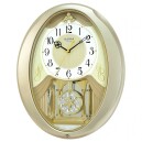 Cette horloge murale Small World présente un design ovale élégant entièrement doré champagne avec animations musicales sophistiquées. Le cadran supérieur blanc à chiffres arabes noirs offre une lecture claire tandis que la partie inférieure abrite un mécanisme animé spectaculaire. À chaque heure, le balancier orné de cristaux type Swarovski s'illumine et tourne au rythme de l'une des 16 mélodies (6 classiques, 6 contemporaines et 4 chants de Noël). Les colonnes dorées et ornements décoratifs créent une scène théâtrale miniature. Volume réglable selon vos préférences. Capteur d'obscurité pour arrêt automatique nocturne préservant votre sommeil. Une horloge prestige alliant mesure du temps et divertissement musical.