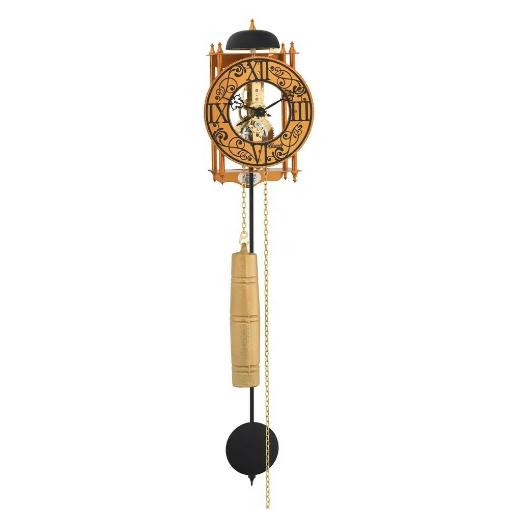 Le mouvement mécanique à chaîne 8 jours offre un spectacle fascinant avec ses rouages et engrenages apparents. Le cadran ajouré orné de motifs décoratifs encadre les chiffres romains, créant un ensemble artistique remarquable. La sonnerie horaire sur cloche évoque l'authenticité des horloges de tour ancestrales.