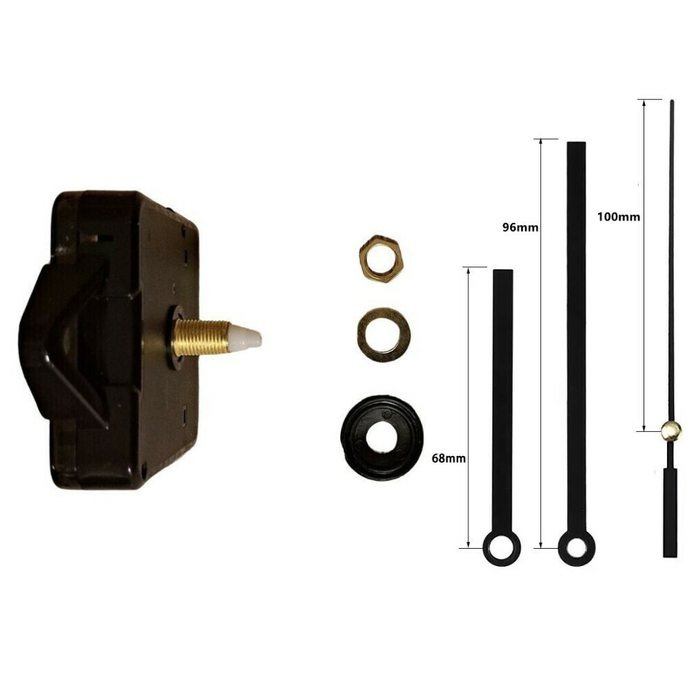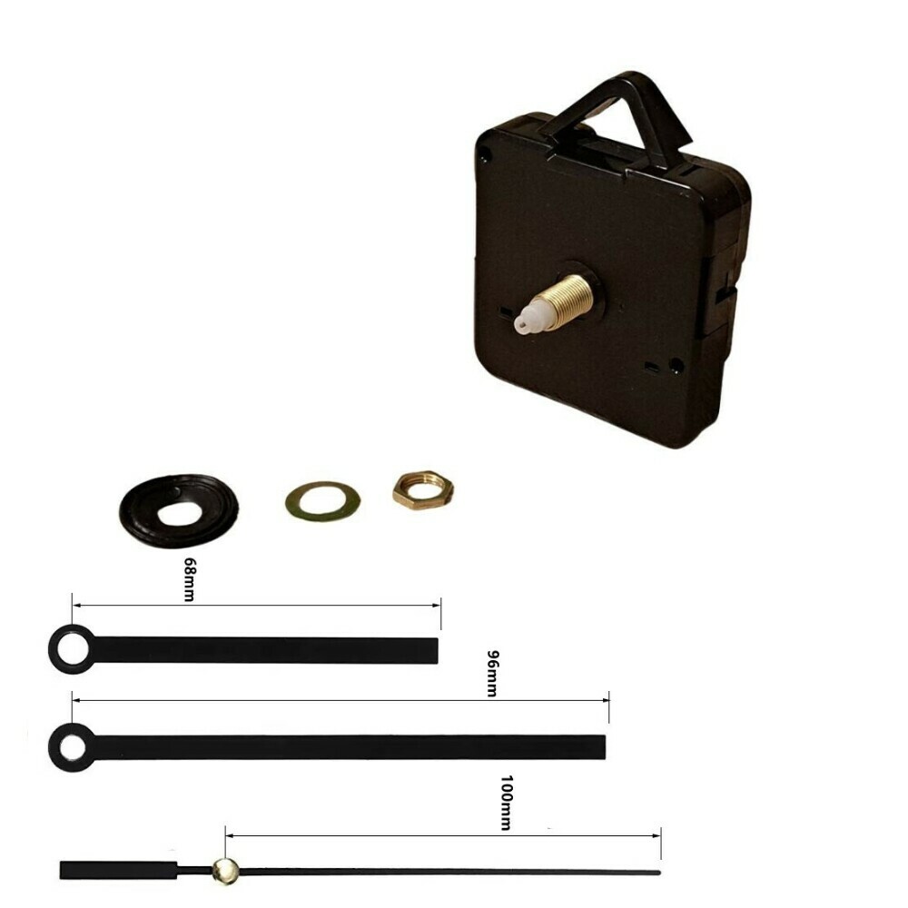 Mouvement d'horloge à pile silencieux, livré avec une paire d'aiguilles noires et une trotteuse. Ce mécanisme silencieux est idéal pour la création d'horloges personnalisées.