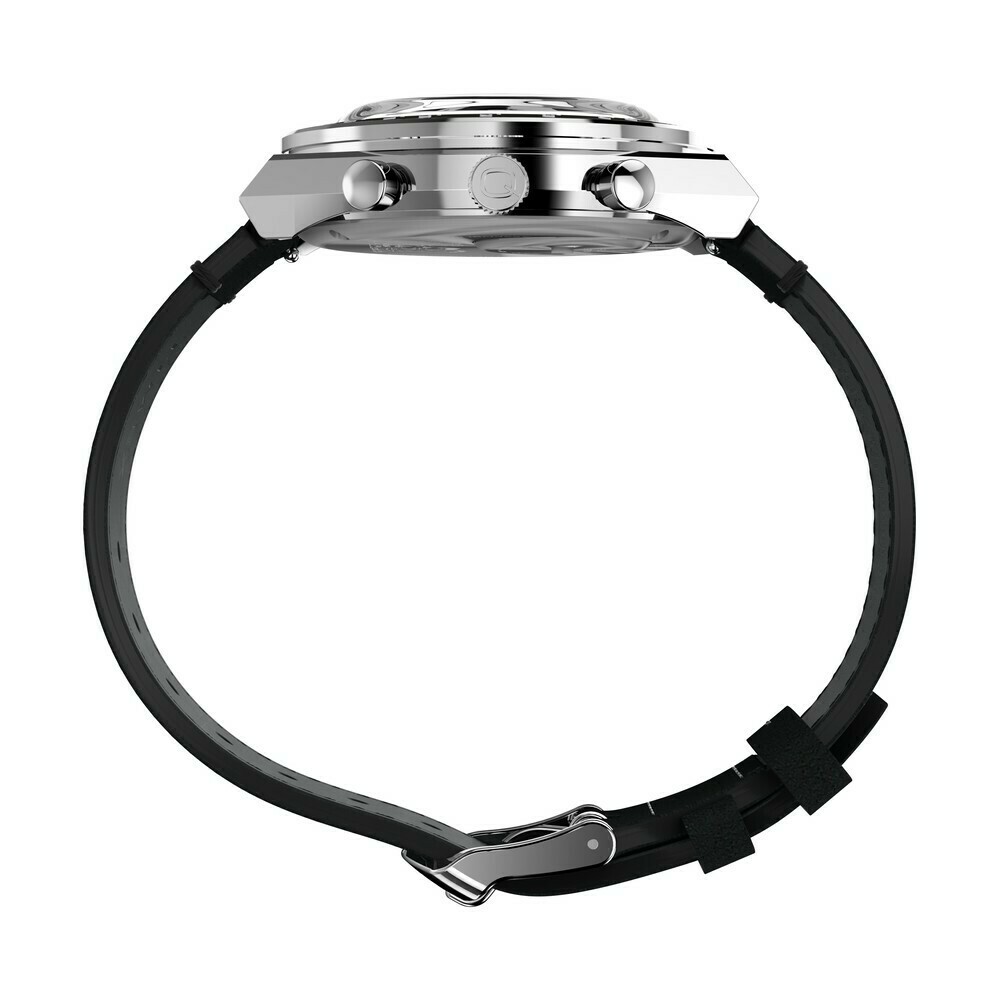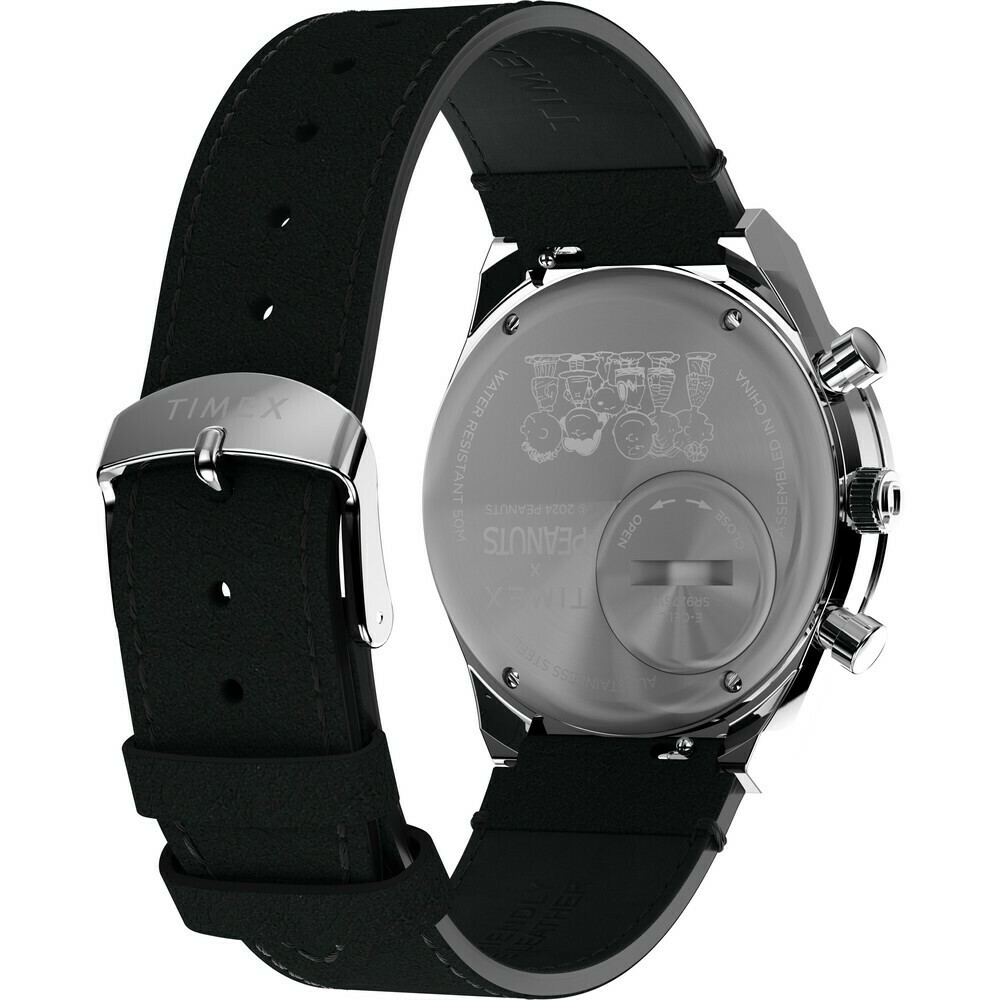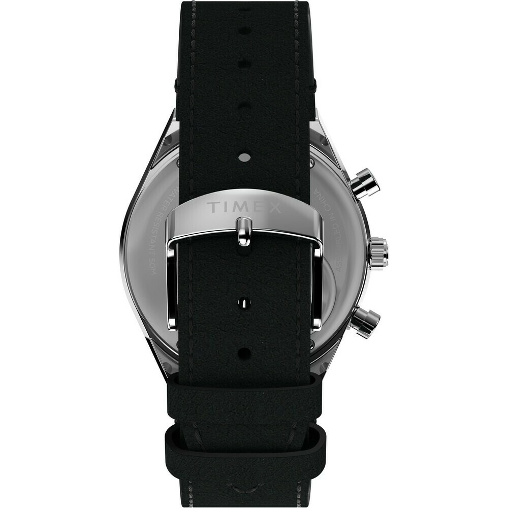 Issue de la célèbre collection Q Timex, cette montre chronographe rend hommage aux modèles sportifs des années 70. Elle combine une esthétique rétro avec une précision moderne. Le boîtier de 40 mm, conçu en acier inoxydable, présente des finitions alternant entre le brossé et le poli pour une meilleure résistance aux micro-rayures quotidiennes. La lunette fixe en aluminium noir est graduée d'une échelle tachymétrique, permettant de calculer une vitesse moyenne sur une distance donnée, une fonctionnalité typique des montres de pilotes automobiles de l'époque.