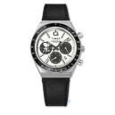 Le cadran blanc contrasté, souvent appelé "Panda" dans le milieu horloger, offre une lisibilité optimale grâce à ses sous-cadrans noirs. À 9 heures, on retrouve l'illustration discrète de Snoopy, apportant une touche d'originalité sans compromettre le sérieux de l'instrument. Les index dimensionnels sont appliqués à la main, tandis qu'une fenêtre de date est positionnée à 4h30. Le mouvement quartz japonais assure une fiabilité constante et une maintenance simplifiée par rapport à un mécanisme automatique. Le verre acrylique bombé accentue le caractère vintage tout en restant fidèle aux standards historiques de la marque.