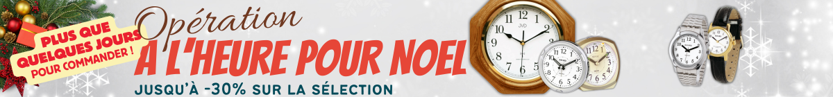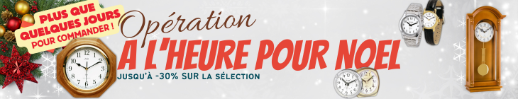 Profitez de l'opération de Noël avec notre sélection d’horloges, réveils et carillons à prix festifs. Offrez le charme du temps qui passe : un cadeau élégant et intemporel à glisser sous le sapin.