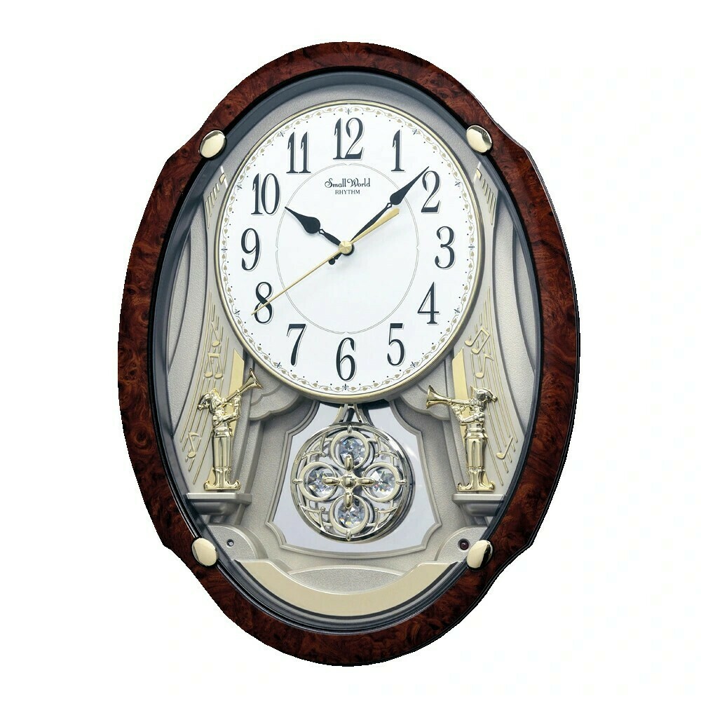 Cette horloge murale Small World transforme la mesure du temps en spectacle audiovisuel enchanteur. Le cadre ovale en plastique ABS robuste encadre un mécanisme sophistiqué à plusieurs animations. À chaque heure, le balancier central oscille de gauche à droite orné de cristaux pendant que retentit l'une des 18 mélodies (12 classiques et 6 chants de Noël). Les figurines dorées latérales avec des trompettes jouent la musique. Le cadran blanc classique avec chiffres arabes assure une lecture claire. Volume réglable et capteur d'obscurité pour arrêt automatique nocturne. Dimensions généreuses. Une horloge spectacle qui ravit toute la famille à chaque sonnerie.