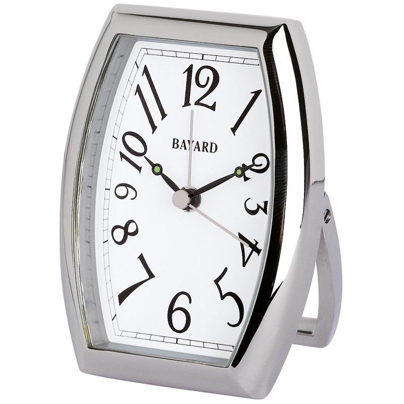 Bayard, la marque incontournable des réveils, vous propose un modèle en métal argenté sur pied.