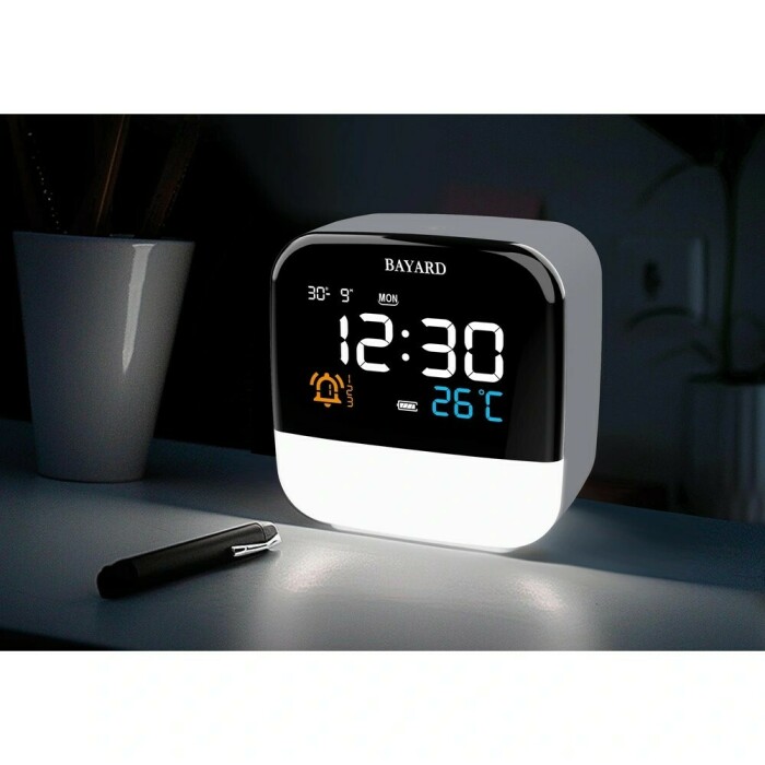 Ce réveil numérique flip de marque Bayard réinvente le mythique affichage "Flip" des années 70 avec une technologie moderne LCD. Son design rétro-futuriste marron et chrome évoque l'âge d'or du design industriel. La synchronisation radiopilotée garantit une précision absolue avec ajustement automatique aux changements d'heure. Le thermomètre intégré affiche la température ambiante. Le capteur de luminosité active automatiquement le rétroéclairage dans l'obscurité.