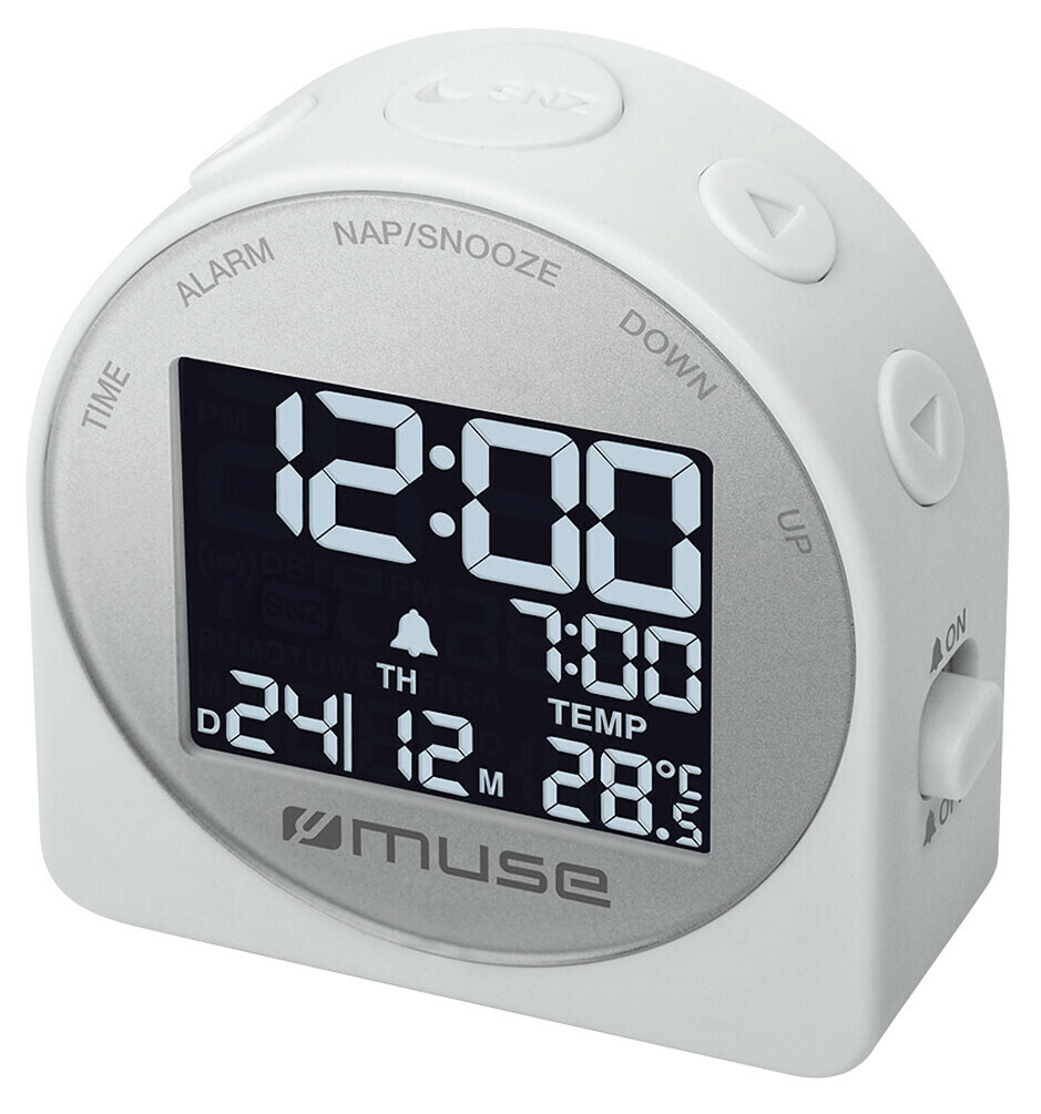 Ce réveil moderne vous fournira les informations essentielles pour la journée : heure, date, température. La fonction sieste de ce réveil vous permettra de faire sonner vitre réveil après 5,10,15 ou 20 minutes sans changer le paramétrage de l'alarme principale.