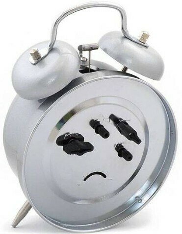 Le réveil écologique par excellence ! Les réveils mécaniques sont équipés de mouvements qui se remontent tous les jours. Avant d’aller dormir, vous remontez votre réveil par l’arrière, grâce à son bouton « papillon » puis il se déclenchera le lendemain à l’heure indiquée par l’aiguille de l’alarme. Un petit marteau tapera alors les 2 cloches sur le dessus pour vous réveiller à coup sûr ! Il fonctionne donc sans piles ni prise, c’est bon pour la planète ! Les réveils mécaniques existent aussi avec une cloche intérieure uniquement pour alléger le style du réveil.