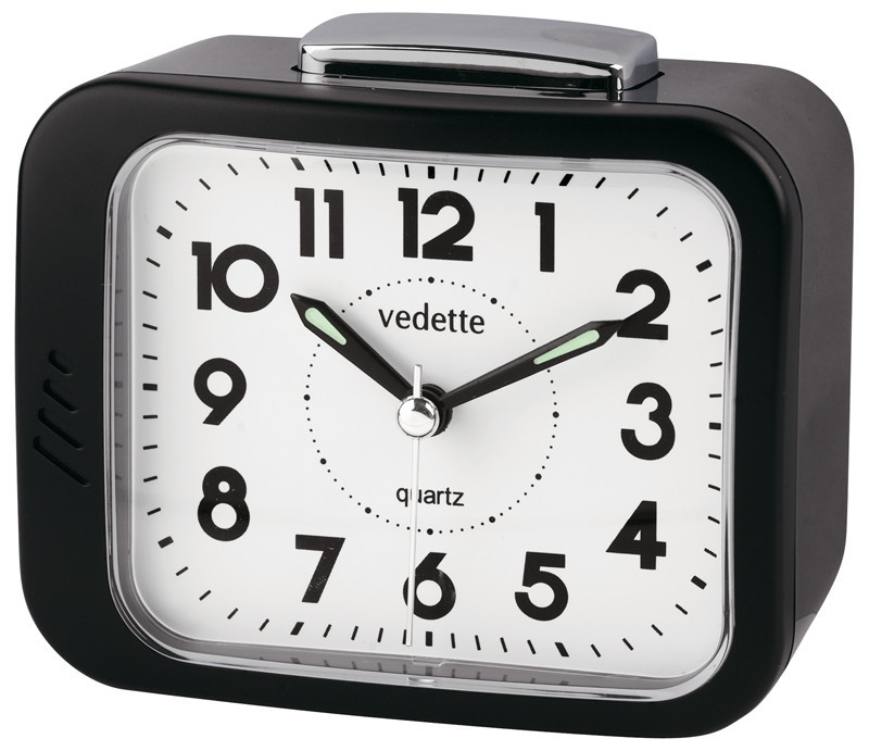 Avec sa forme rectangulaire bien stable, ce réveil sera parfait pour les personnes sensibles au bruit (mouvement silencieux) et à la lumière dans la nuit (uniquement les aiguilles sont luminescentes).
