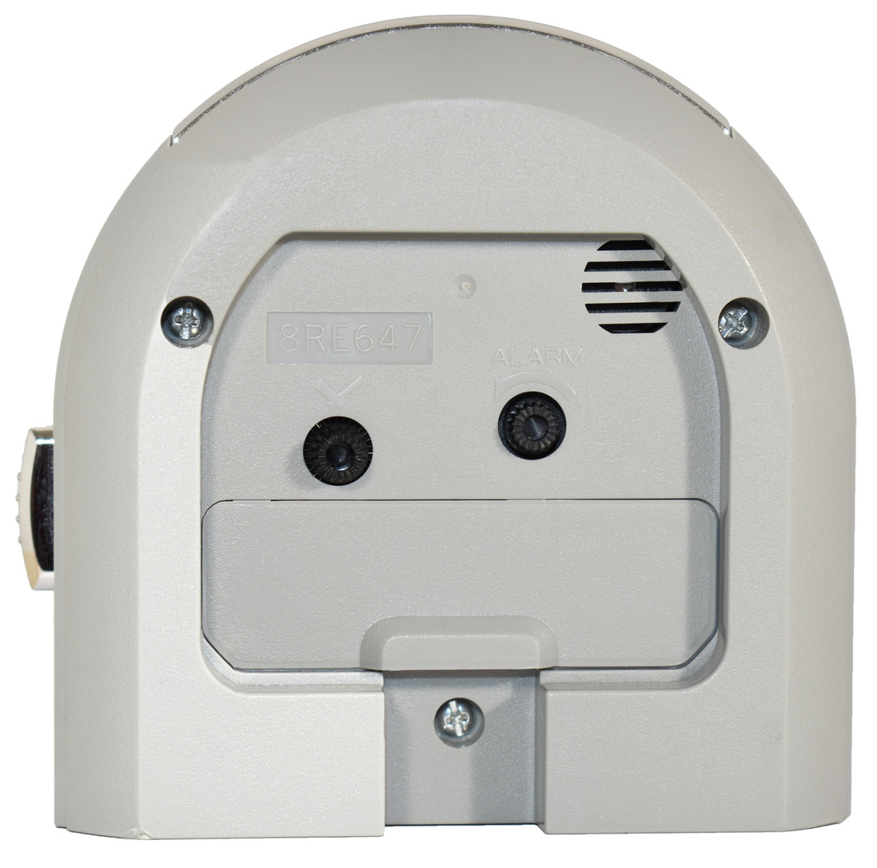 A l'arrière 2 boutons, un de mise à l'heure et l'autre pour l'alarme.