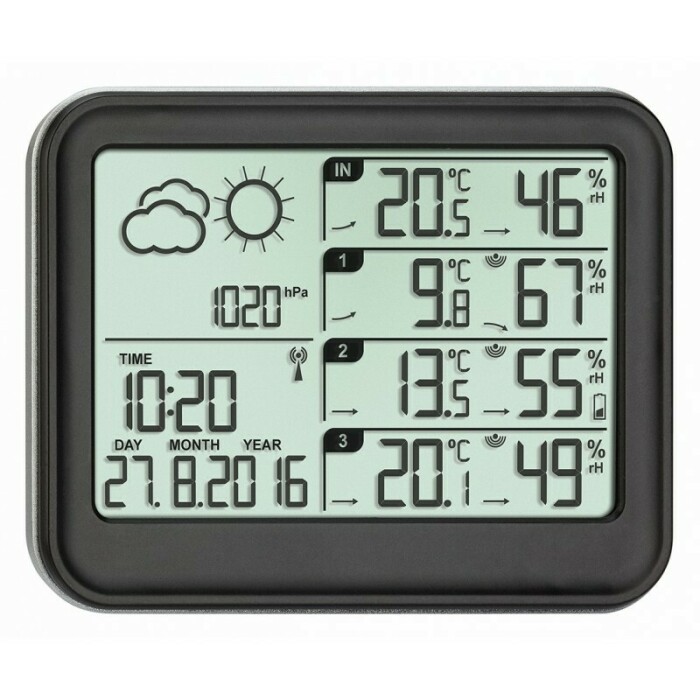 Avec son affichage organisé, vous aurez une lisibilité idéale à plusieurs mètres des informations fournies par la station météo : heure, date, température intérieure et extérieure avec les minimales et maximales, et les prévisions météo par icônes. Les boutons en façade rendent les réglages très faciles à réaliser.